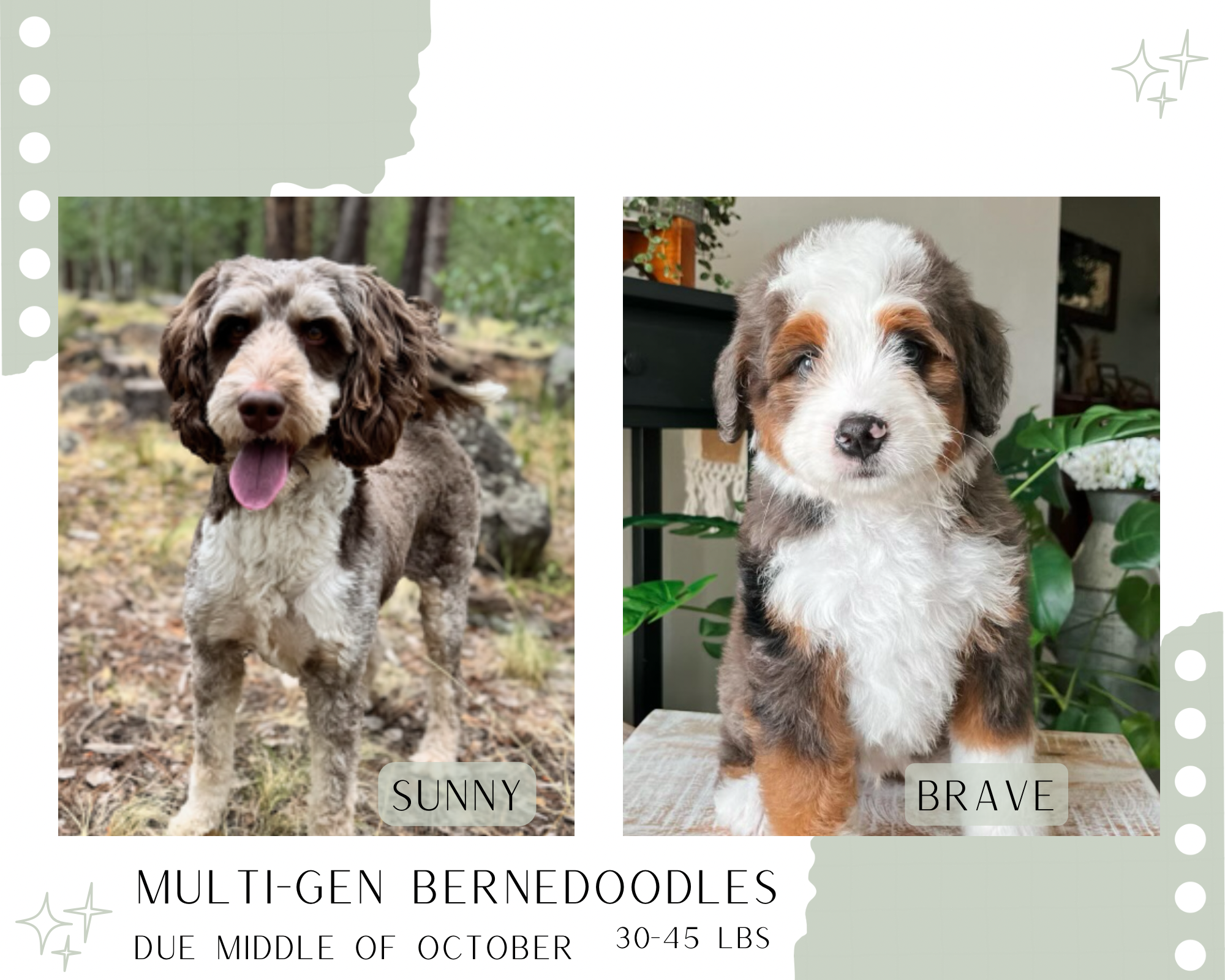 Hi everyone! We are Dallon and Ashtyn Ajeman. We are the faces behind Cotton Lane Puppies. We have two little girls along with our furbabies Willa (Australian Shepherd), Ziggie (Aussiedoodle), Sunny (Bernedoodle) she lives in a guardian home with our sister, and we recently added Rue (Goldendoodle). We live in a small town in Arizona called the Gila Valley. The Gila Valley is well known for its cotton, which is where we got our name Cotton Lane Puppies. If we aren’t at home loving on puppies you can find us playing on the beach in Mexico, going camping in the White Mountians, or going on a walk by our beautiful cotton fields. We are dedicated to raising puppies with amazing temperaments and dispositions. Our main priority is ensuring the health and well-being of all our dogs from birth until they leave with their forever family. We strive to produce healthy, long-living companions that shed less than the parent breeds we know and love. Our dogs are our life and we treat each as a member of our family.